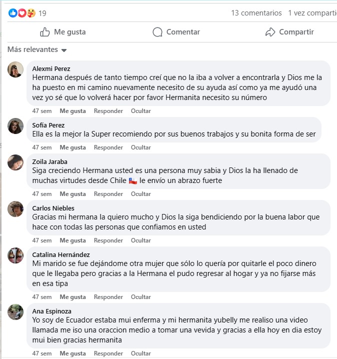 MIS HERMANITOS Y HERMANITAS yo agradezco el voto de confianza que entregan cunado vienen a mi para sanar sus problemas, recuerda que. Tú vales por lo que eres y no por lo que la gente diga o piense. Cuídate mucho y valórate mucho, recuerda que eres muy importante para todos los que te apreciamos y queremos. Y SI ALGUN DIA MIS HERMANITOS TIENEN PROBLEMAS NO DUDEN EN HABLARME.